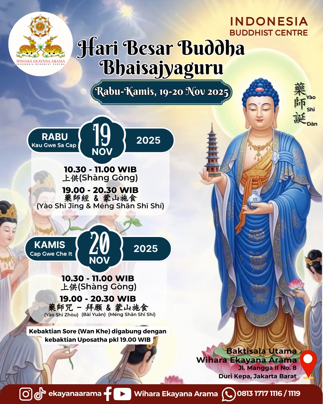 Hari Besar Buddha Bhaisajyaguru - Rabu-Kamis, 19-20 Nov 2025Rabu, 19 November 2025 10:30 - Kamis, 20 November 2025 20:30