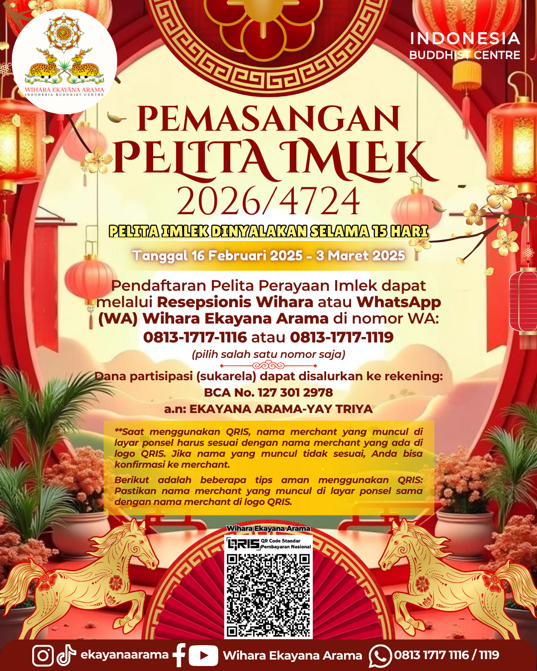 Wihara Ekayana AramaWihara Ekayana Arama - Indonesia Buddhist Centre adalah sebuah wadah yang didirikan untuk membantu pemutaran roda Dharma dengan semangat non-sektarian melalui penyediaan berbagai pelayanan dan program pembinaan spiritual berkelanjutan yang berlandaskan pada esensi pandangan dan praktik yang Buddhistik. Wihara Ekayana Arama senantiasa memiliki visi untuk mengembangkan agama Buddha dalam skala yang luas.